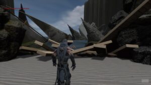 - Integrated traversal platforms into the wreck to naturally teach climbing mechanics