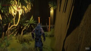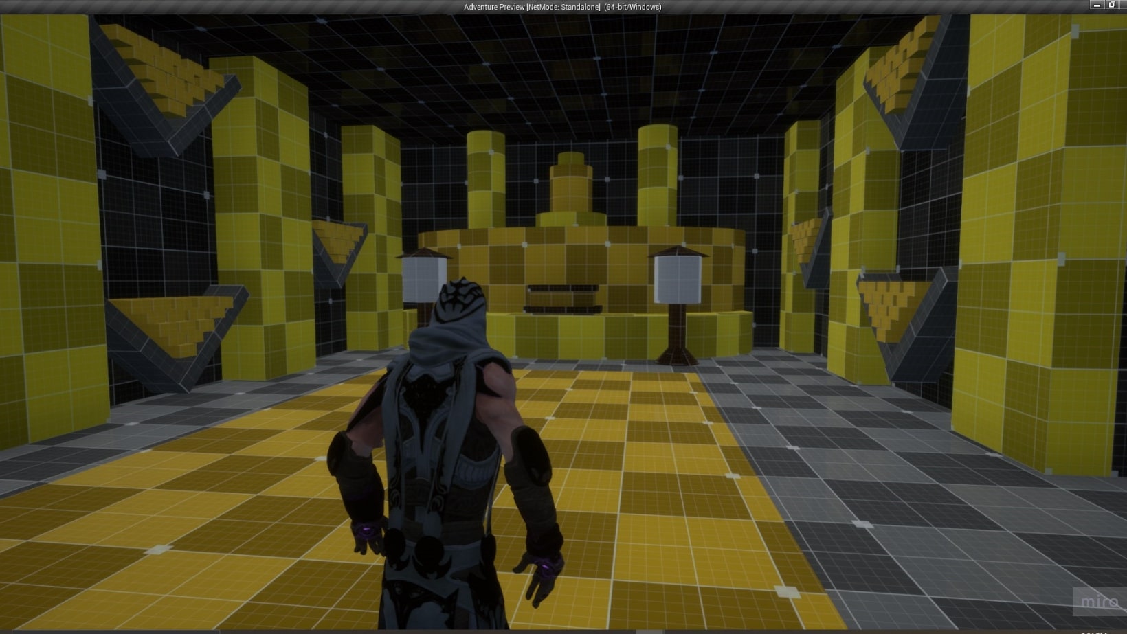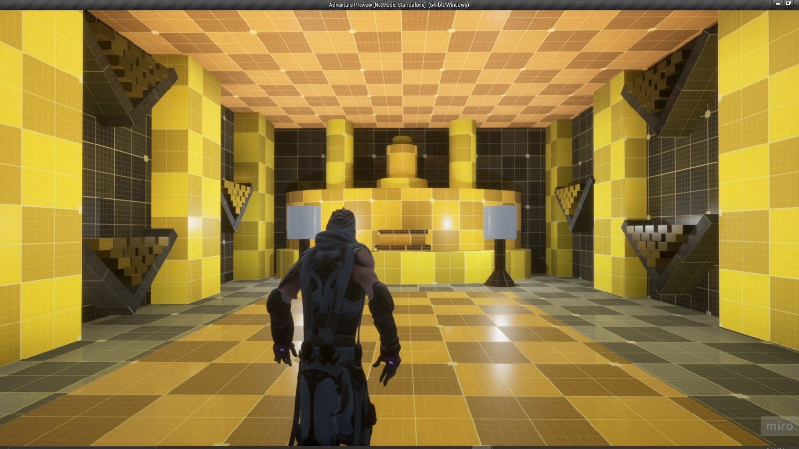 After navigating climbing challenges within the temple, players were guided by environmental breadcrumbs—lanterns, candles, and broken boards—toward a glowing entrance. Inside, the chamber contrasted the darker temple interior with bright lighting, creating a feeling of safety and reward. The treasure, highlighted by a shining crown, served as a payoff for the player’s progression, while a hidden exit provided a seamless transition into the next teammate’s level.