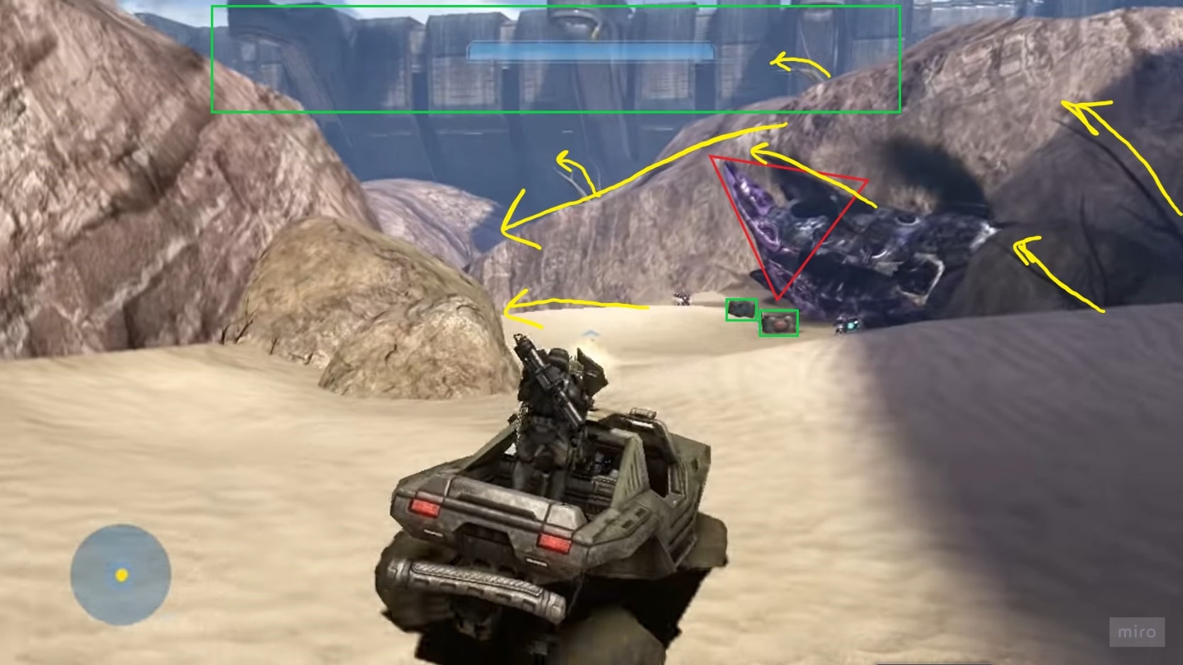 - Battlefield traversal designed to keep the temple in sight as players advanced