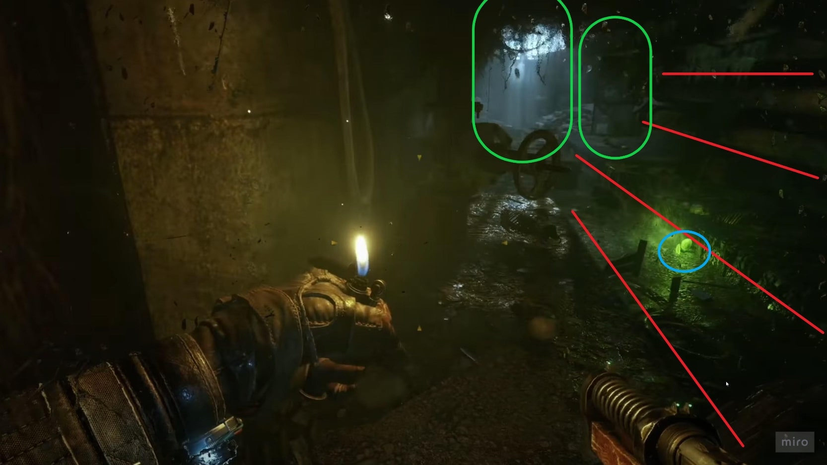 - Courtyard light cue provided a secondary focal point, naturally directing players toward the correct path inside
