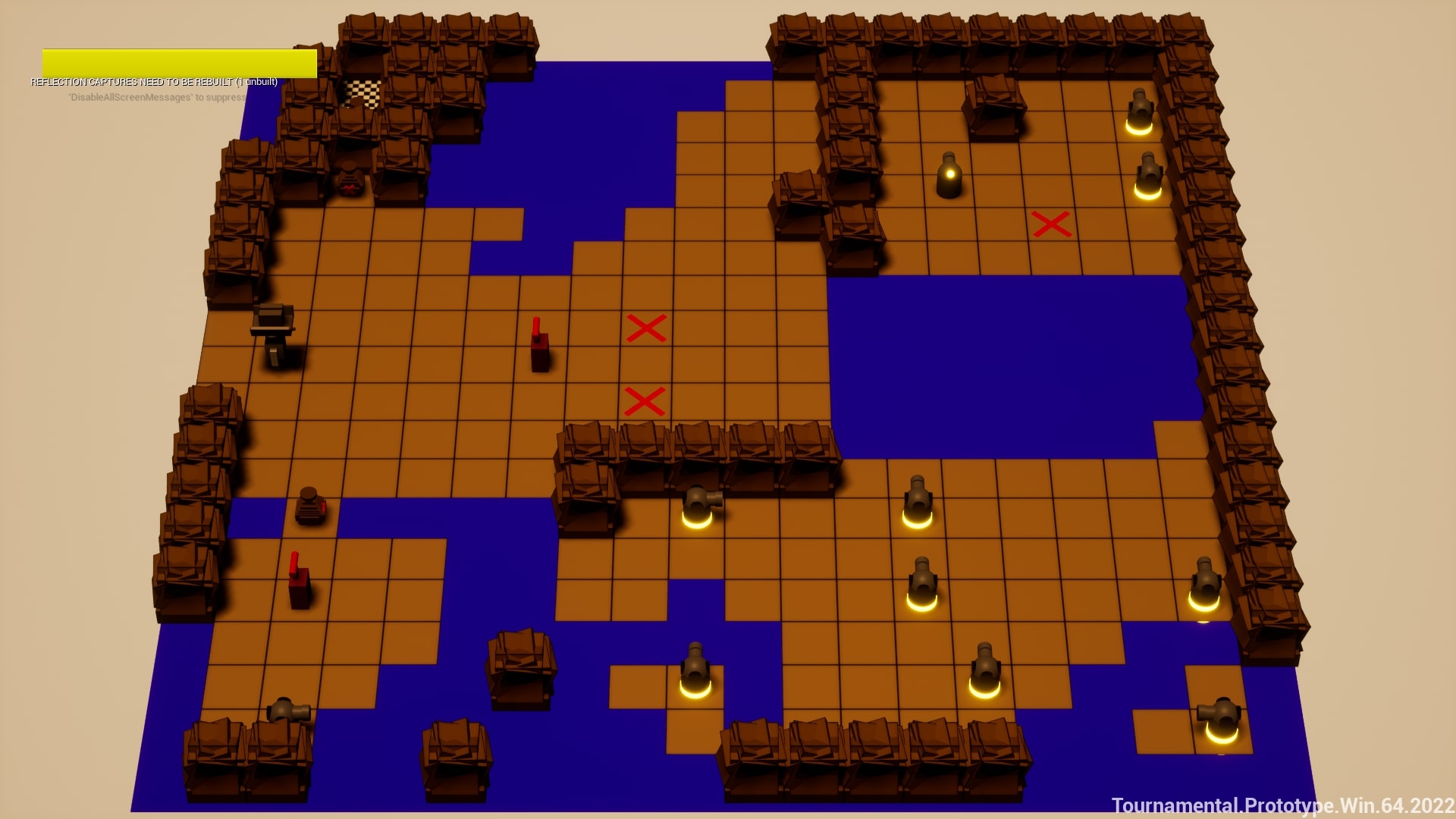 • Redirecting cannons rotate 90 degrees on interaction and spawn redirected bullets.